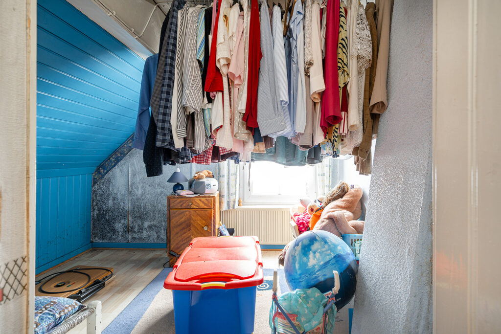 Im Obergeschoss stehen insgesamt vier Zimmer zur Verfügung, von denen derzeit nur ein Raum ausgebaut ist. Die übrigen Räume befinden sich im Rohzustand bzw. entsprechen nicht mehr heutigen Wohnstandards.