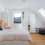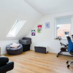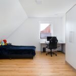 Im Dachgeschoss erwarten Sie vier große Schlafzimmer, die individuell als Kinder-, Gäste- oder Arbeitszimmer genutzt werden können. Das moderne Badezimmer ist mit einer Badewanne und separater Dusche ausgestattet und bietet auch für Familien ausreichend Platz. Zusätzlich ist im Flur ein Zugang zum Dachboden vorhanden, der weiteren Stauraum bietet.