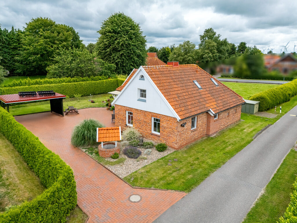 In ruhiger Nachbarschaft der Gemeinde Utarp liegt dieses liebevoll sanierte Einfamilienhaus mit ca. 163 m² Wohnfläche auf einem ca. 594 m² großen Grundstück. Tantis Huus vereint Tradition und modernen Wohnkomfort: Der ursprüngliche Verblender wurde wiederaufgebaut, das Haus 2014 kernsaniert – Elektrik, Estrich, Dämmung, Fenster, Heizsystem und mehr wurden vollständig erneuert.