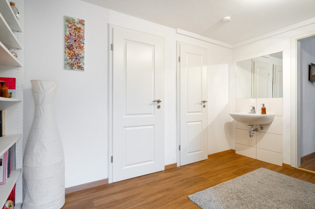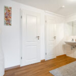 Für zusätzliche Sicherheit sorgt ein hochwertiges Videoüberwachungssystem von MOBOTIX: Außenbereiche beim Carport sowie der Flur im Innenbereich werden überwacht. Eine moderne Türstation ergänzt das System und ermöglicht komfortable und sichere Zutrittskontrolle.